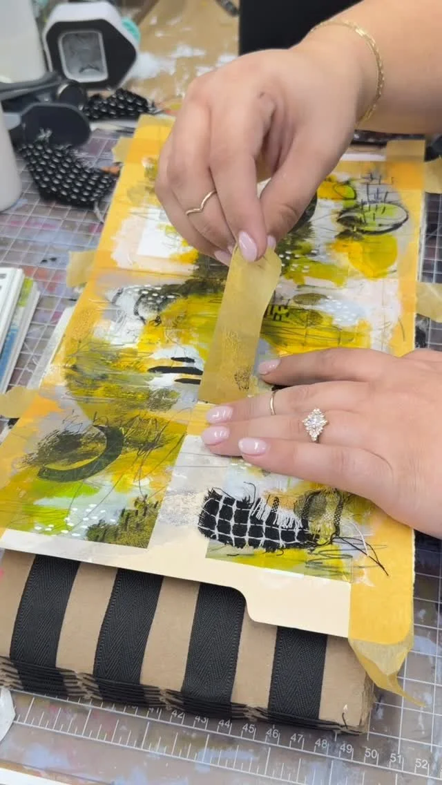 I added stitching to create texture and experimented with opaque black gesso to add boldness to the pages. The fluid correction pen became my favorite go-to for mark making, as it dries quickly allowing you to easily close up the journal with no mess.